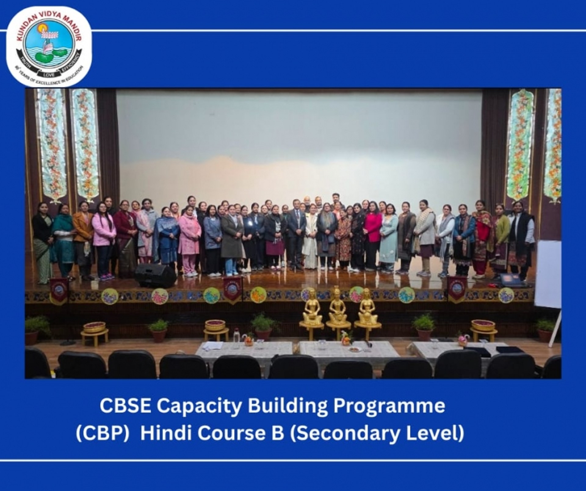 Kundan Vidya Mandir Senior Secondary School organised a CBSE Capacity Building Programme (CBP) on Hindi Course B (Secondary Level) to strengthen Hindi language pedagogy. Resource persons Ms. Inderjeet Kaur Syal and Ms. Babita Agarwal shared practical insights on instructional objectives, lesson planning, and learner-centric teaching strategies to enhance students’ comprehension and expression. The workshop highlighted Hindi as a language of communication and cultural identity, leaving teachers motivated and better equipped for effective classroom practices.