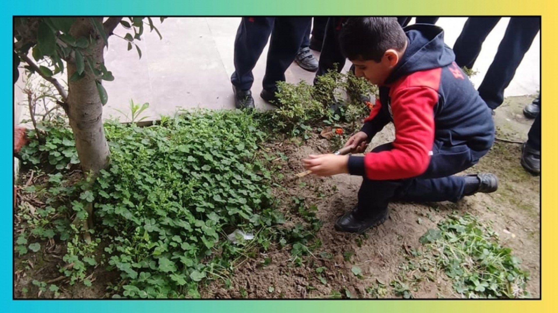 Divided into six teams, each group was entrusted with a lawn. Today’s focus was understanding basic gardening tools and learning the correct use of a trowel to remove weeds. With great excitement and confidence, the students got to work-successfully uprooting weeds all by themselves!