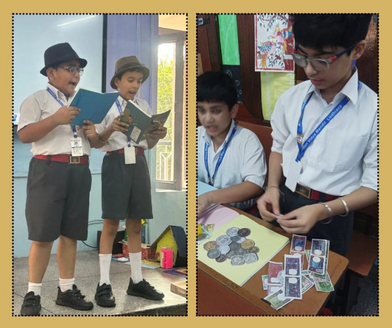 The Talk Hub conducted lively role plays, and Smart Financial Club students made collages of old Indian currencies. Creative Carvers crafted birds using diyas, and Choreo Tribe continued tribal stick dance.