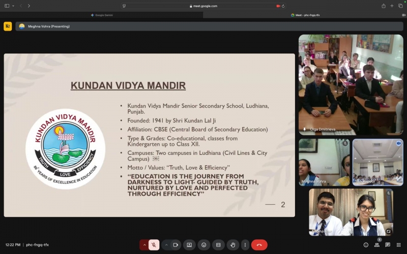 Kundan Vidya Mandir, Ludhiana, successfully hosted a Virtual International Cultural Exchange Session with students and educators from Russia, promoting global learning and mutual respect . The initiative centered on comparative discussions about respective education systems , school life , and cultural identity . Our talented students provided insightful contributions, significantly enhancing the dialogue. The success of this collaboration was equally due to the enthusiastic participation and insightful exchanges from our Russian counterparts, whose openness greatly enriched the experience . This collaboration highlights the school's dedication to cross-cultural understanding and affirming the shared aspirations of students across global boundaries.